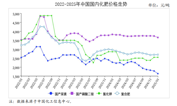 中商谍报网讯:2025年1月,尿素和磷酸二铵价钱延续跌势,其他以稳为从。储蓄用肥正正在加速推进,估计国内化肥价钱将正在春耕备肥用肥启动后稳中上涨。